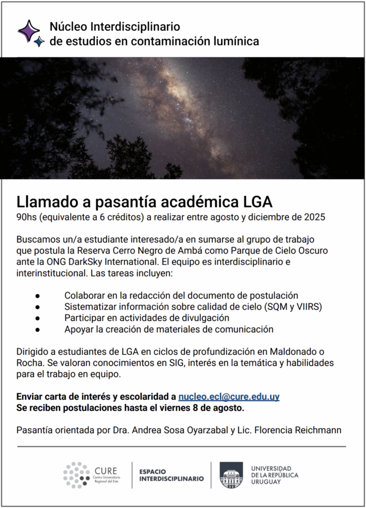 Desde el Núcleo ECL estamos llamando a un/a estudiante que quiera sumarse al equipo de trabajo, para asistir en el proceso de postulación de Ambá como Parque de Cielo Oscuro de DarkSky International